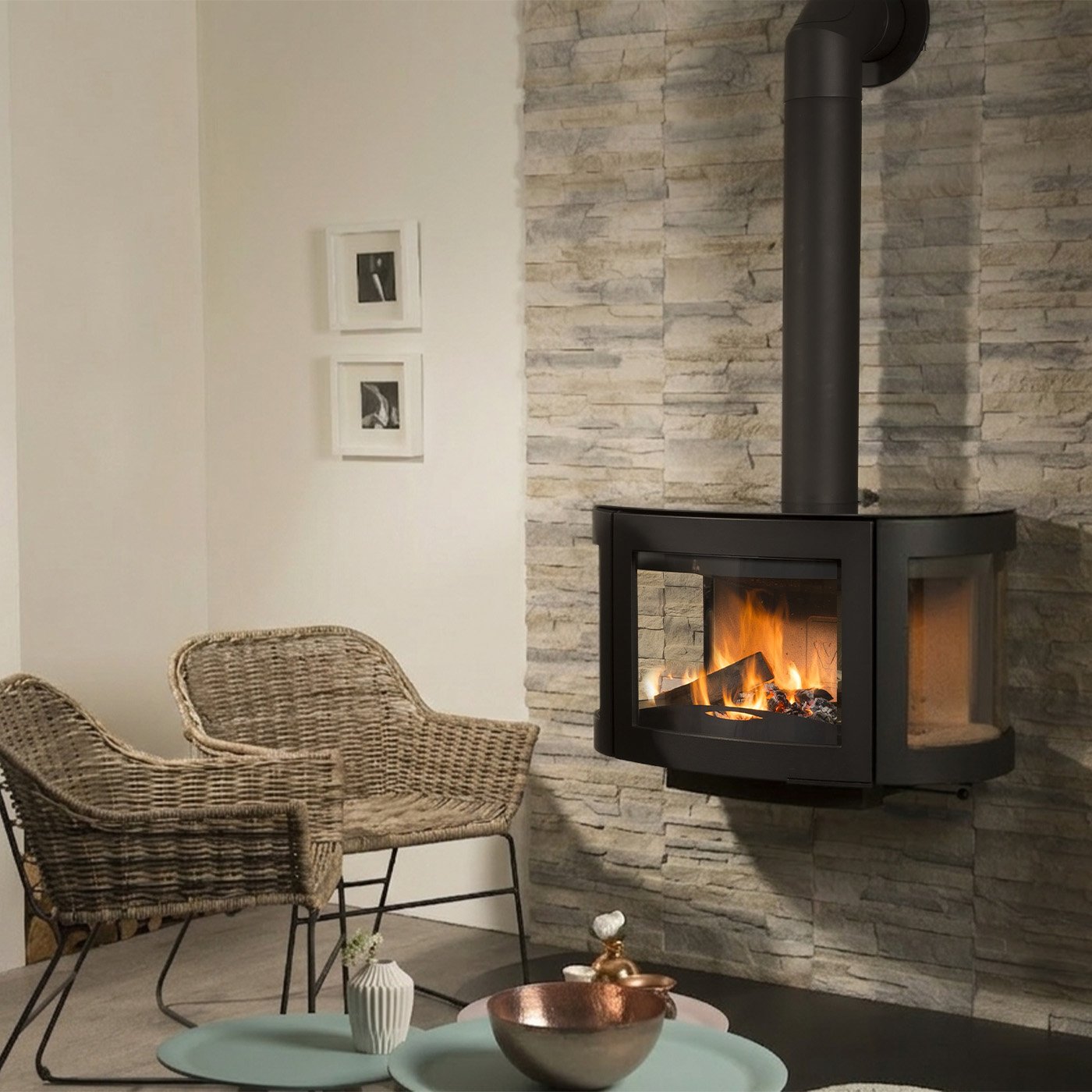 Bien entendu, cette perle noire attire également le regard et constitue une source de chaleur dans un bureau, un établissement de restauration ou une salle d'événements. Partout où l'on apprécie l'atmosphère, le confort, le romantisme, la chaleur et la beauté du design.